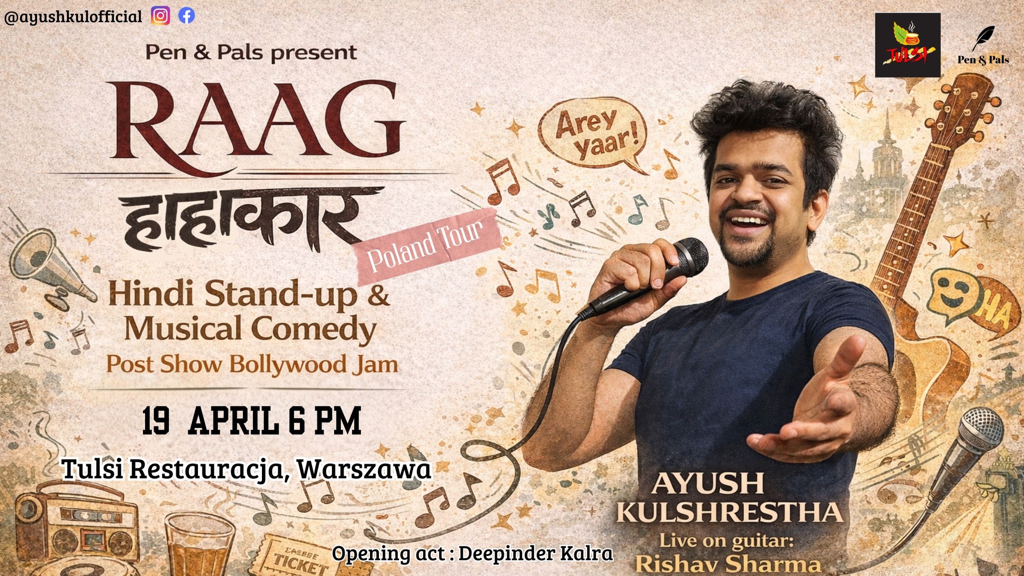 Now watch Ayush Kulshrestha bring all the chaos and magic to Poland with very special nights in Krakow & Warsaw with his show Raag Hahakaar.