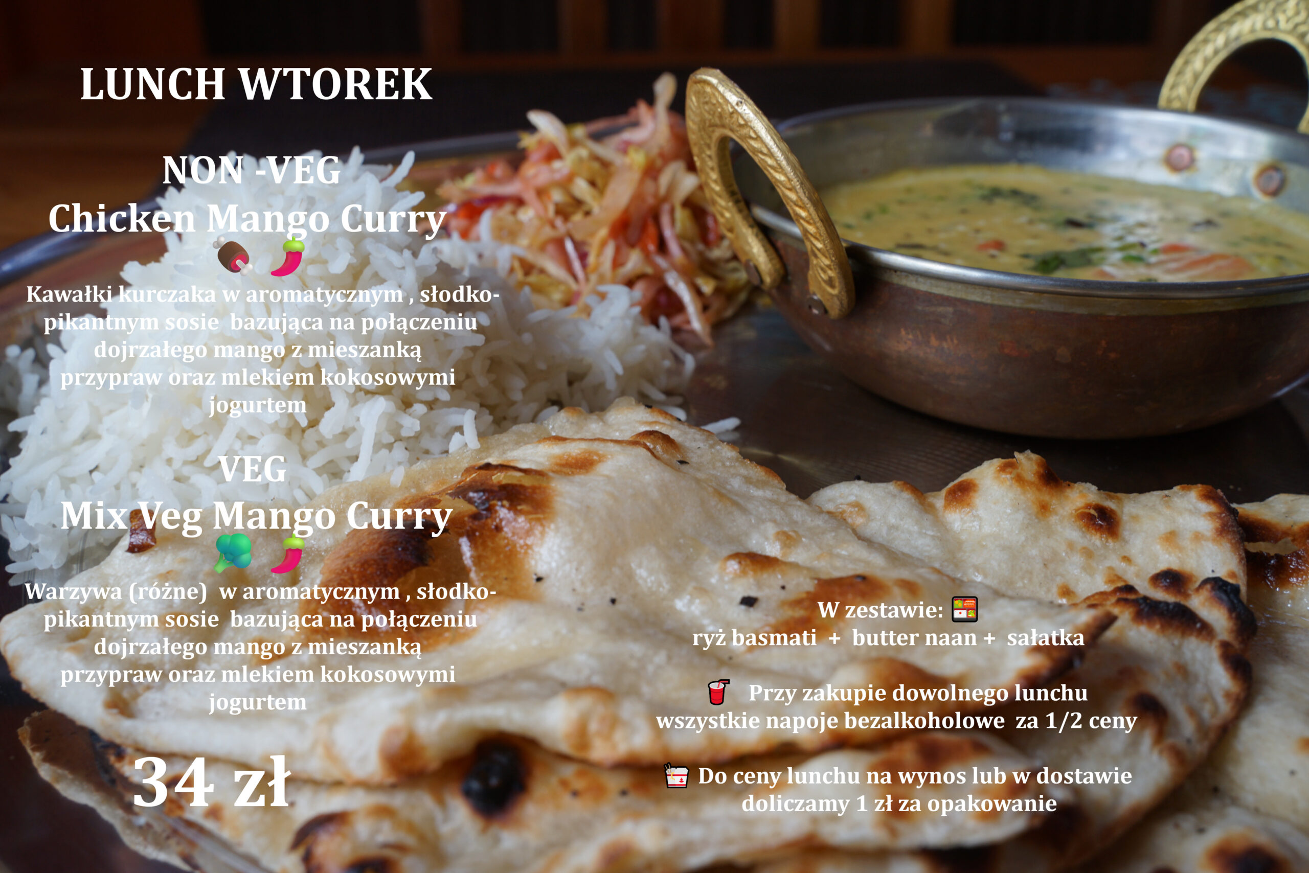 Lubicie wtorek? Bardziej niż poniedziałek, prawda? No ale do następnego weekendu jeszcze chwila więc trzeba dopakować trochę energii. Najlepiej lunchem. Bo u nas dzisiaj przepyszne nowe curry z mango twistem. W wersji dla wegetarian i dla tych innych. Wpadajcie, smakujcie i napełniajcie się energią do pracy. Do zobaczenia na nowych lunchach w Tulsi.