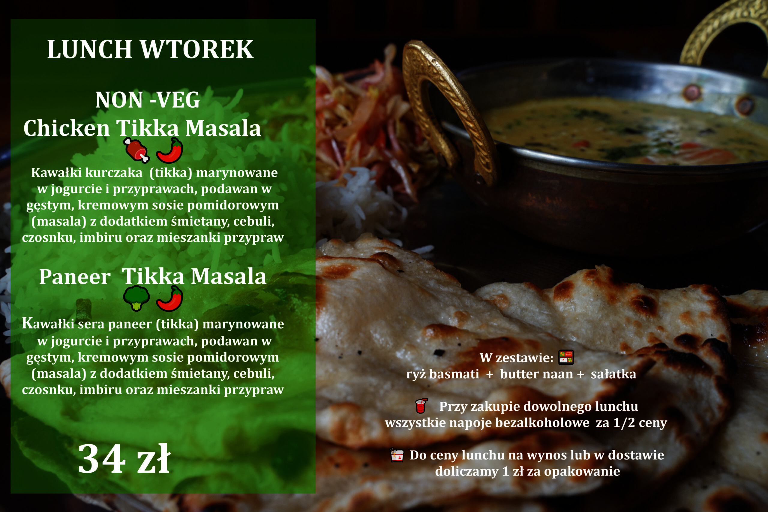 🙏🍱🥣 Wtorek 21.04.2026– Tulsi Lunch (cena 34 zł) do wyboru 2 wersje: veg lub non-veg na miejscu, dostawą lub odbiorem osobistym 🍛🥗🇮🇳